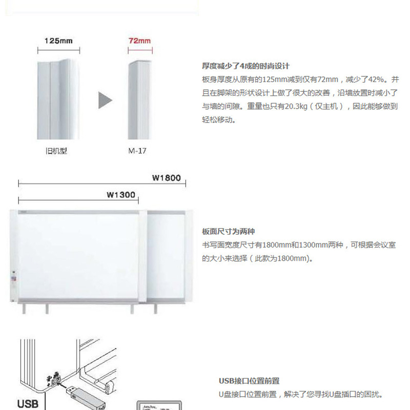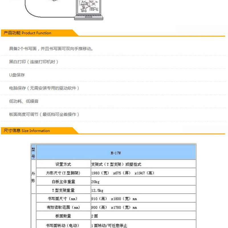 書寫面積:910x1800mm(雙面),黑白打印,U盤存儲,USB插槽,雙向手推/電動 ?
