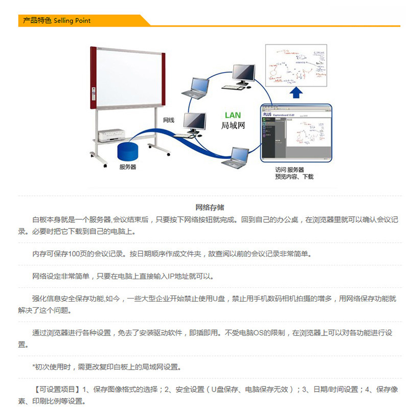 書寫面積:910x1800mm(雙面),彩色打印,U盤存儲(chǔ),USB插槽,板面可貼磁粒,雙向手推,帶網(wǎng)絡(luò)接口 ?