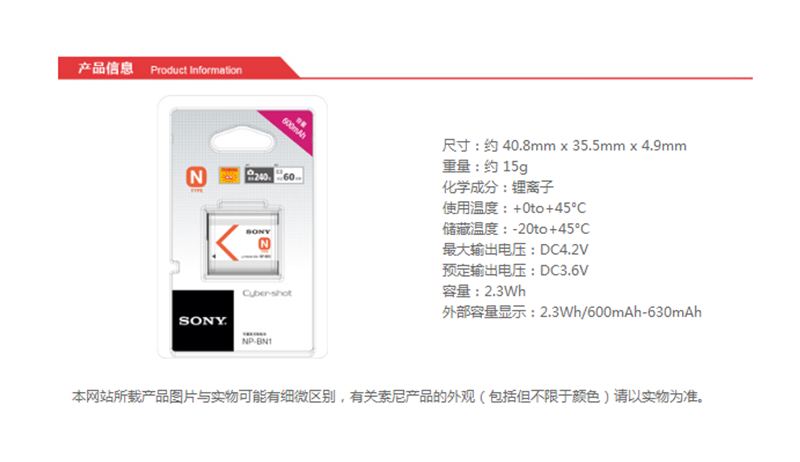 索尼(SONY) NP-BN1 可重復(fù)充電電池
