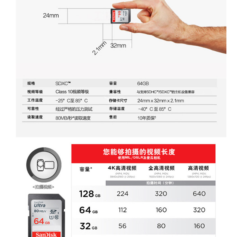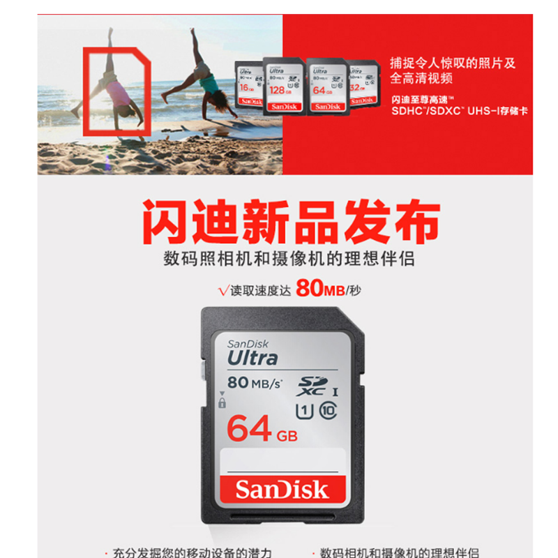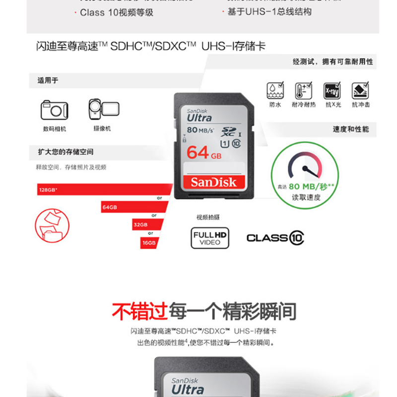 閃迪(SanDisk) 64GB 讀速80MB/s 至尊高速SDXC UHS-I存儲(chǔ)卡 Class10 SD卡