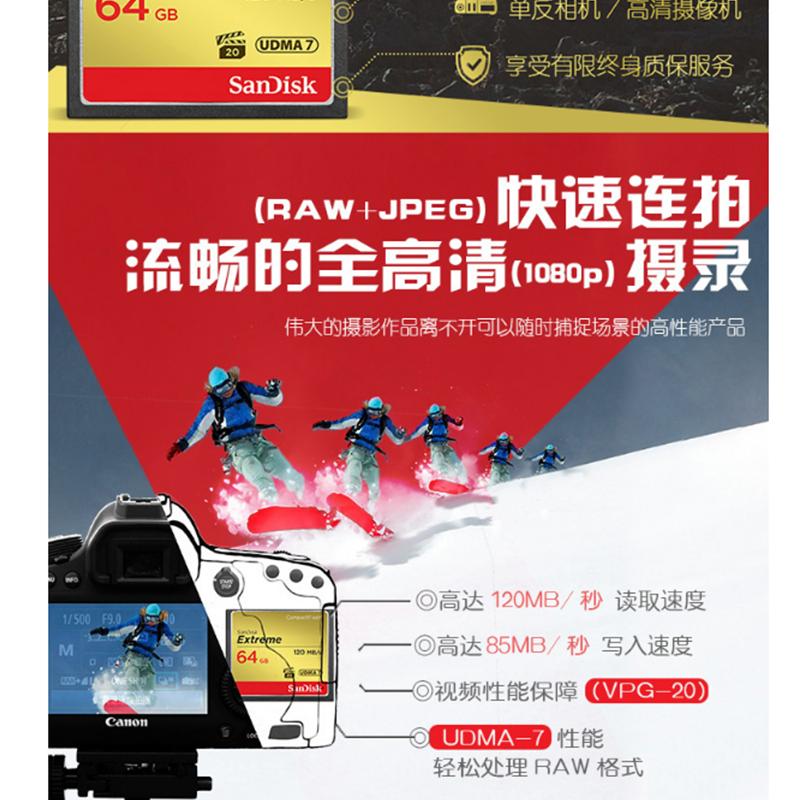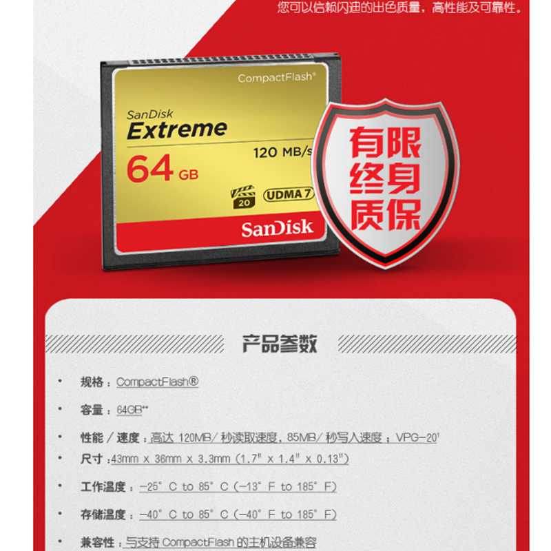 閃迪(SanDisk) 64GB 至尊極速CompactFlash存儲卡 UDMA7 CF卡