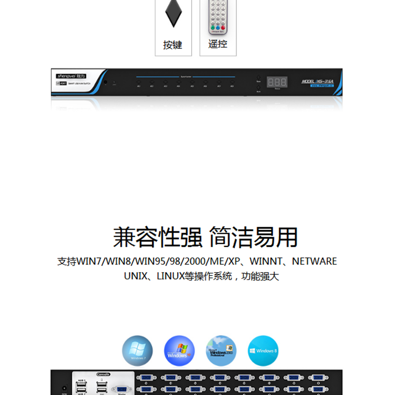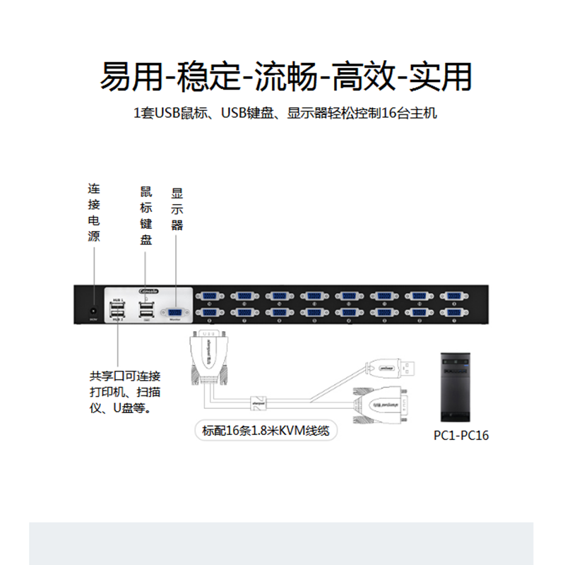 勝為 KS-316A 16口 USB手動機架式 KVM切換器 配16組線
