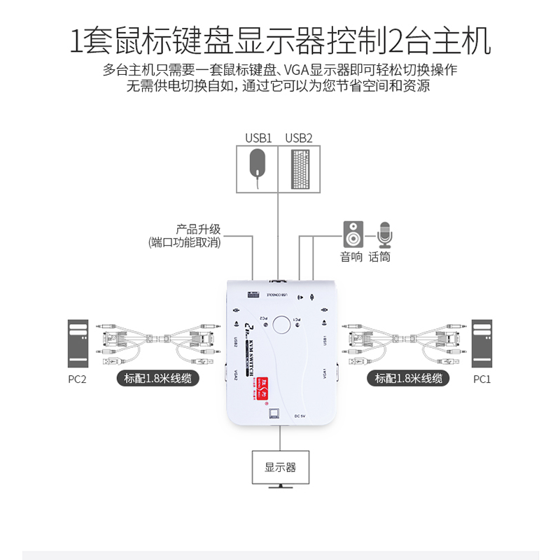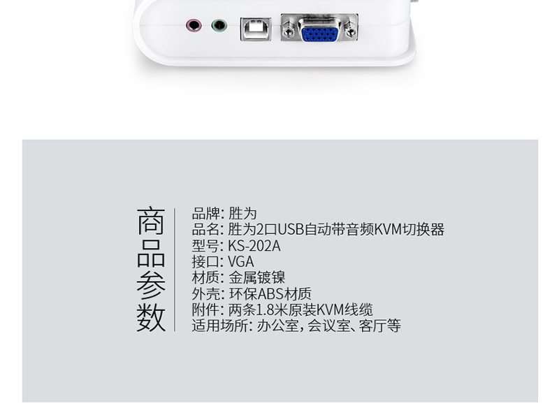勝為 KS-202A KVM切換器 USB 2口自動 配線 多電腦切換器帶音頻