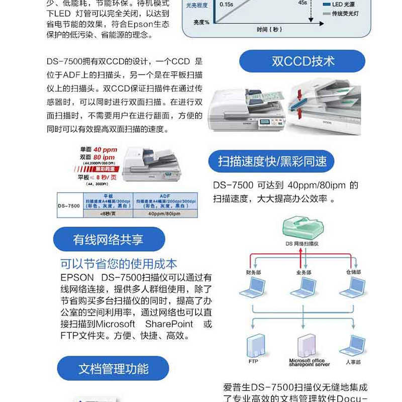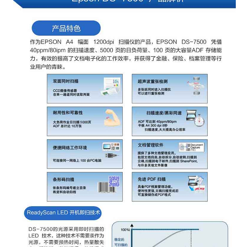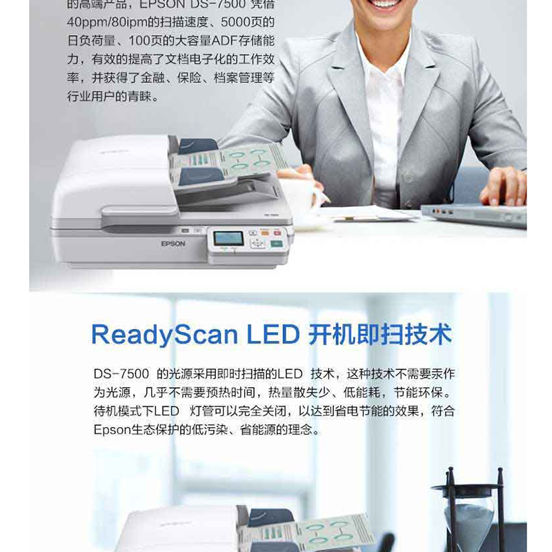 愛普生(EPSON) DS-7500 A4超高速文檔管理掃描儀高清