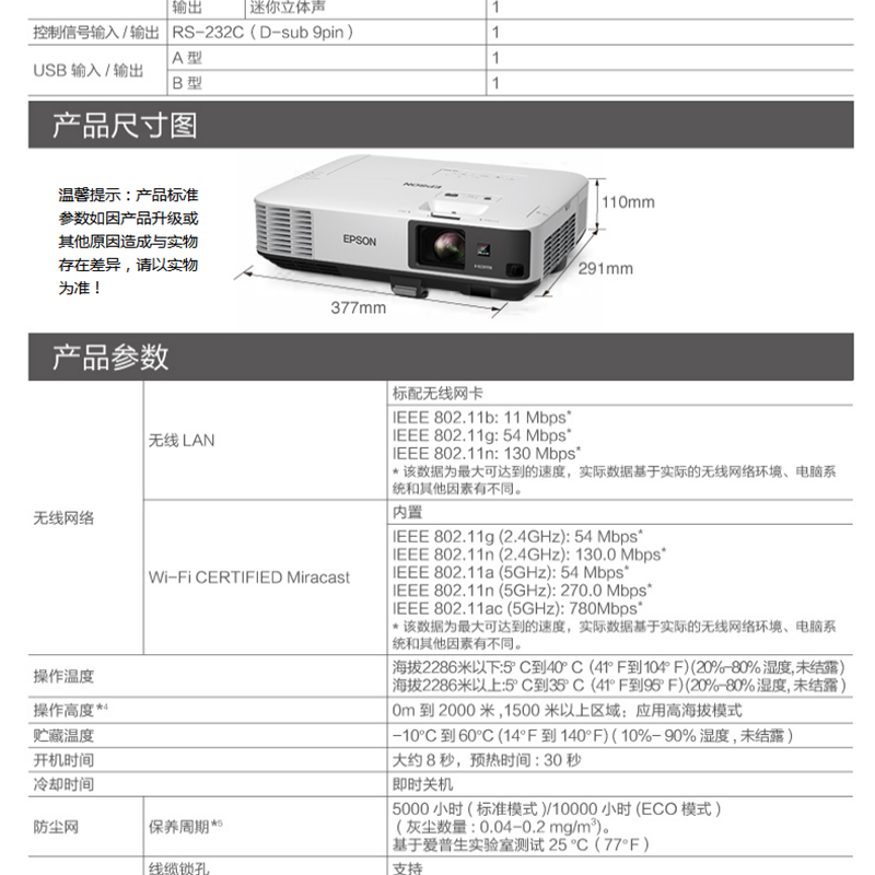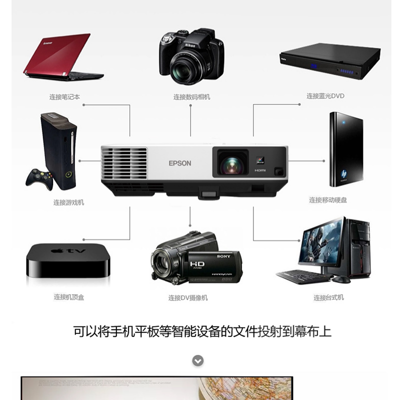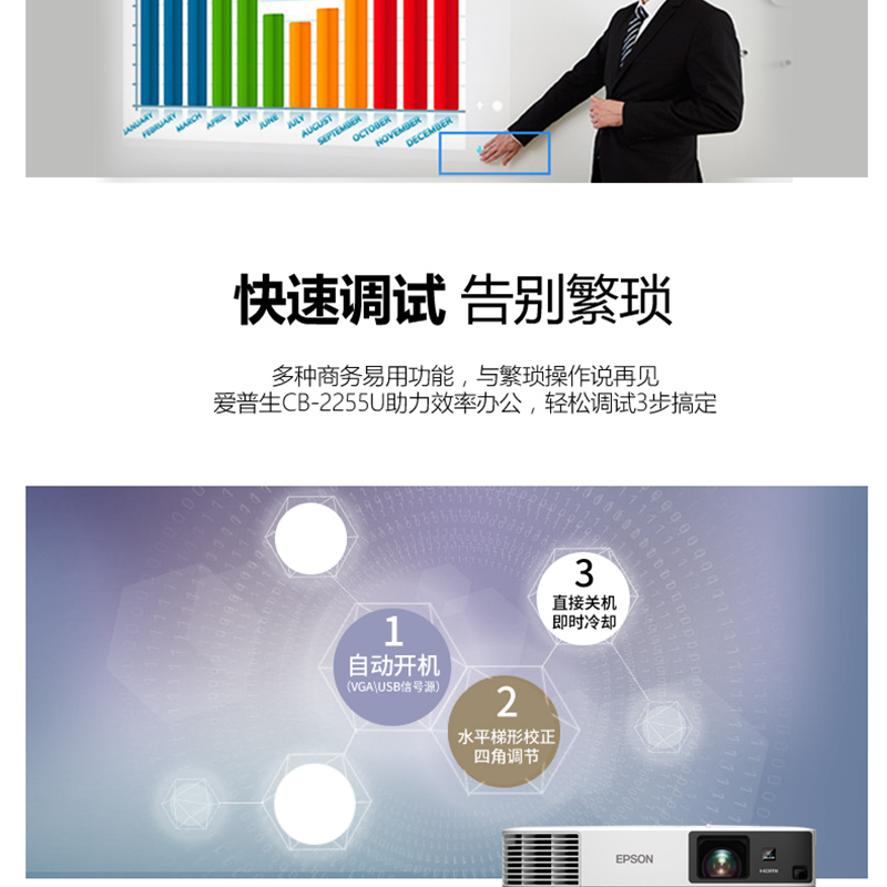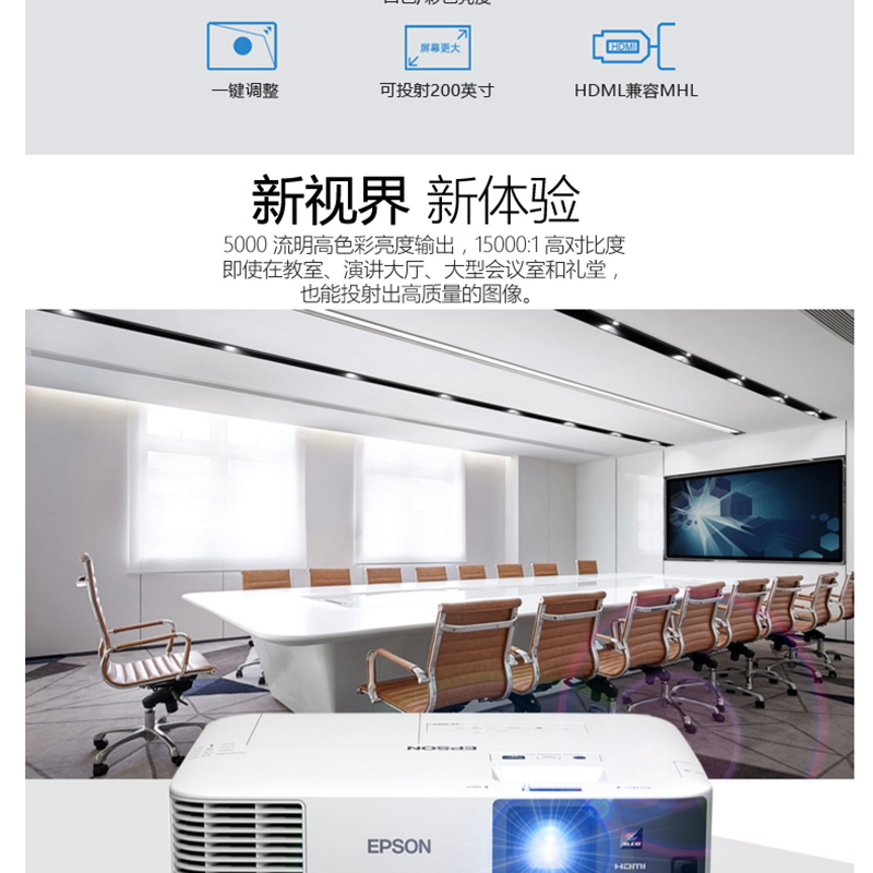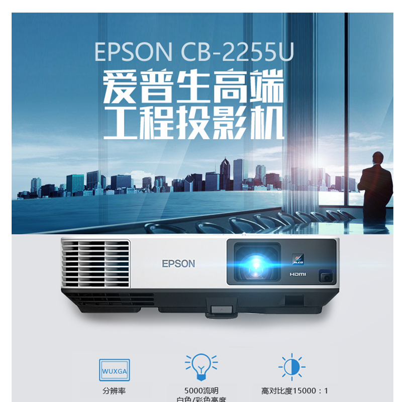 愛(ài)普生(EPSON) CB-2255U 商務(wù)會(huì)議教育辦公工程投影儀 投影機(jī)(5000流明 無(wú)線投影)