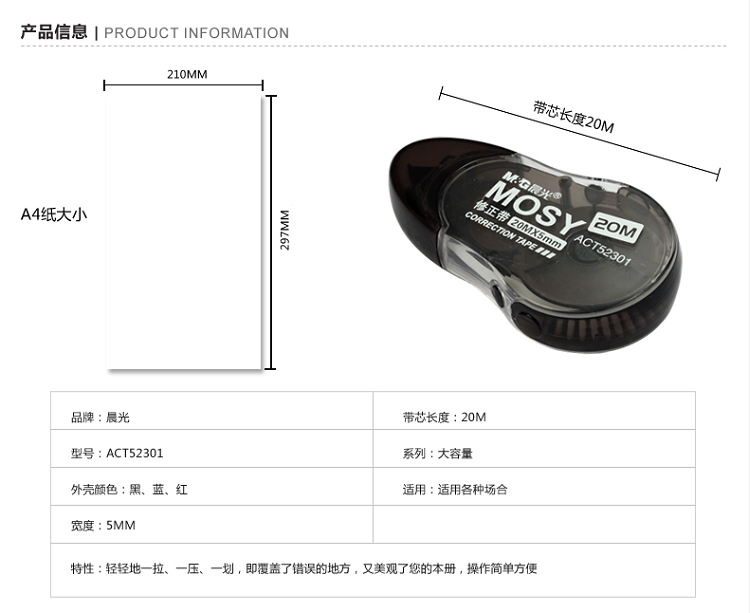 晨光(M&G) ACT52301 超大容量修正帶 20m/卡 單個裝