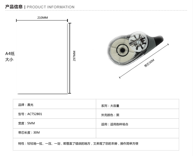 晨光(M&G) ACT52801 特大容量修正帶 5mm*30m/卡