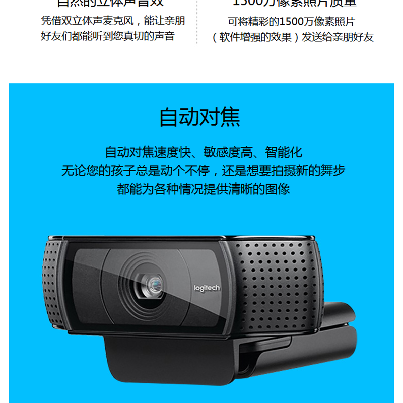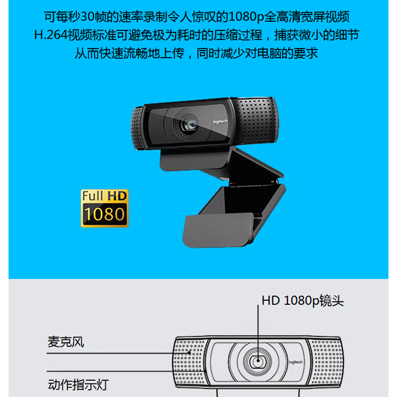 羅技(Logitech) C920e 主播專用攝像頭 高顏值