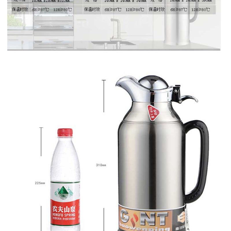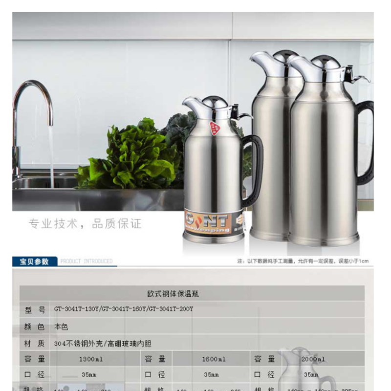 嘉特(GiNT) 3041-160 不銹鋼熱水瓶 鴨嘴保溫暖水壺 高硼玻璃內(nèi)膽家用 開(kāi)水保溫壺
