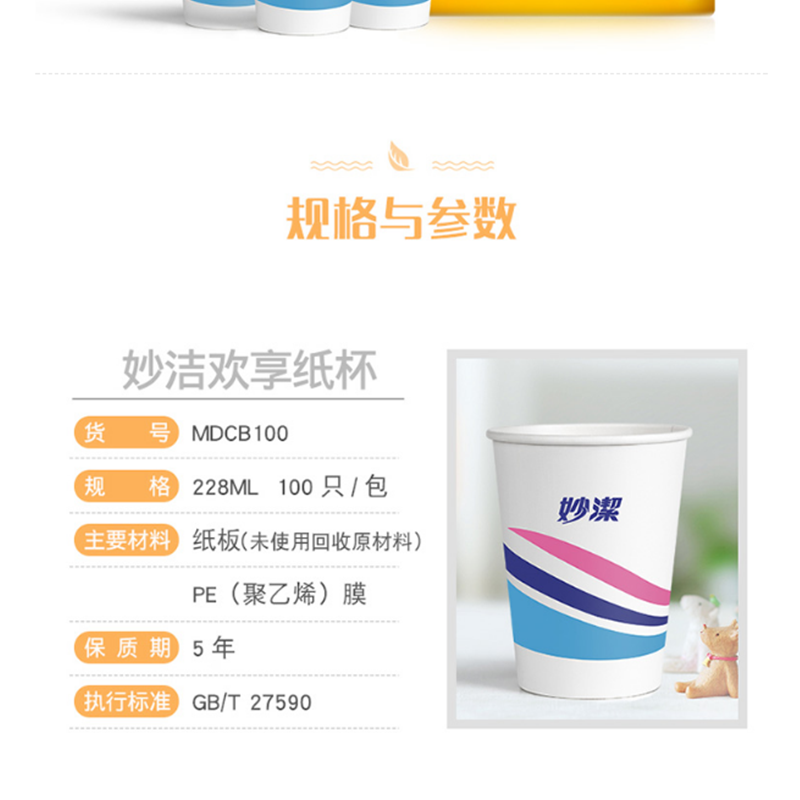 妙潔(MIAOJIE) 紙杯一次性加厚中杯 100只裝
