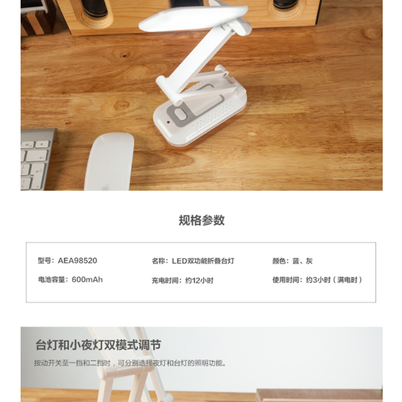 臺(tái)燈和小夜燈雙功能,可折疊結(jié)構(gòu),攜帶方便,600mAh ?
