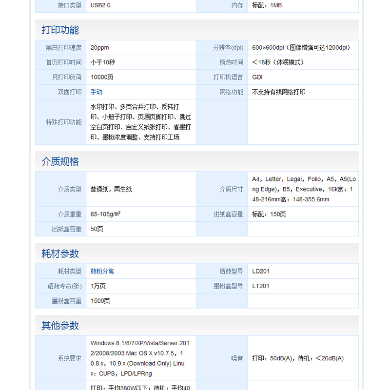聯(lián)想(Lenovo) LJ2206 黑白激光打印機(jī) A4幅面