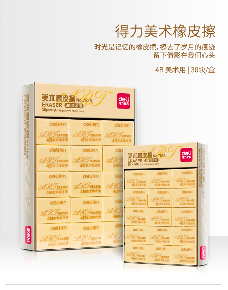 得力(deli) 7534 4B學(xué)生美術(shù)橡皮擦 32*22*13mm/塊 30塊/盒
