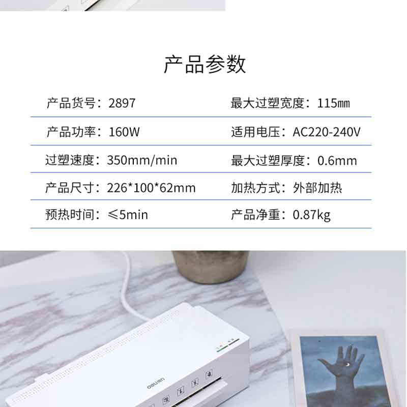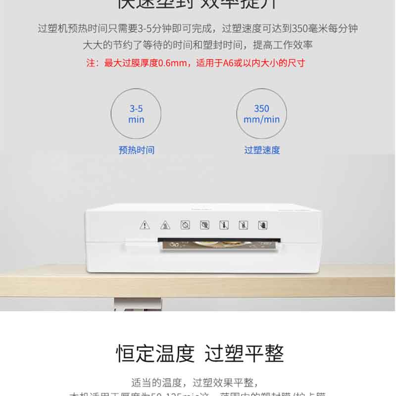 得力(deli) 2897 A6塑封機(jī) 照片塑封辦公家用小型過(guò)塑機(jī)熱塑冷裱壓膜機(jī) 白色