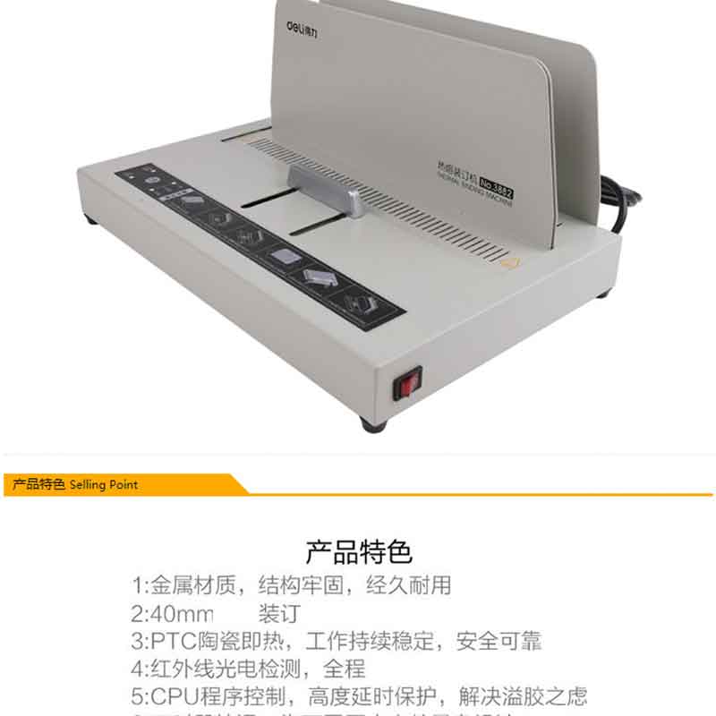 得力(deli) 14671 熱熔裝訂機(jī)合同財(cái)務(wù)會(huì)計(jì)憑證裝訂機(jī)封套膠裝機(jī)全自動(dòng)標(biāo)書 熱熔裝訂機(jī)(可裝訂40mm)