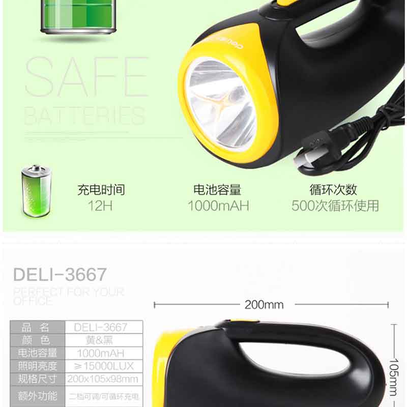 得力(deli) 3667 探照燈(黑色)(個(gè))20*10.5*9.8cm 1000mAh