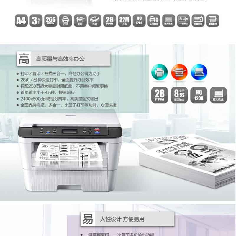 打印速度:28頁/分鐘,全新鼓粉分離技術(shù),更節(jié)省 ?