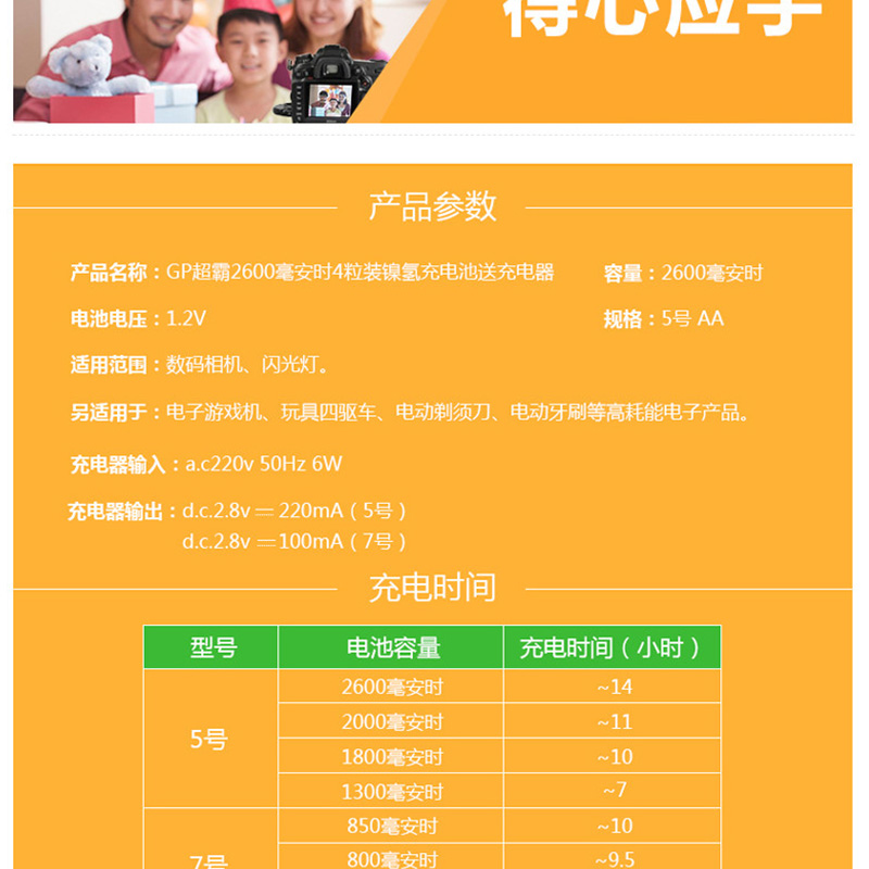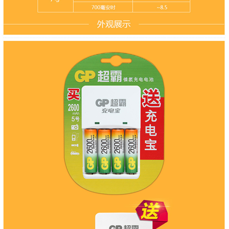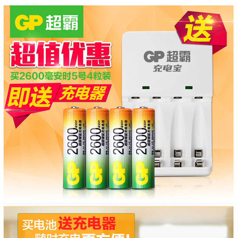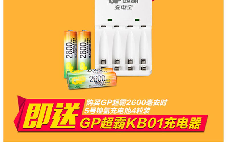 超霸(GP) 260AAHC-2IL4(KBO1) 充電套裝可充5號7號KB01充電器2600毫安充電電池4節(jié)裝AA