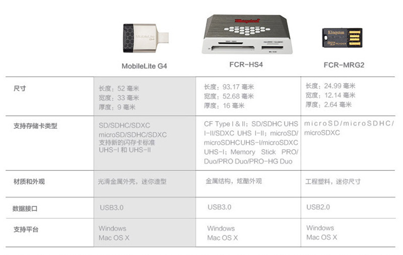 金士頓(Kingston) FCR-MLG4 USB 3.0 MobileLite G4 多功能讀卡器