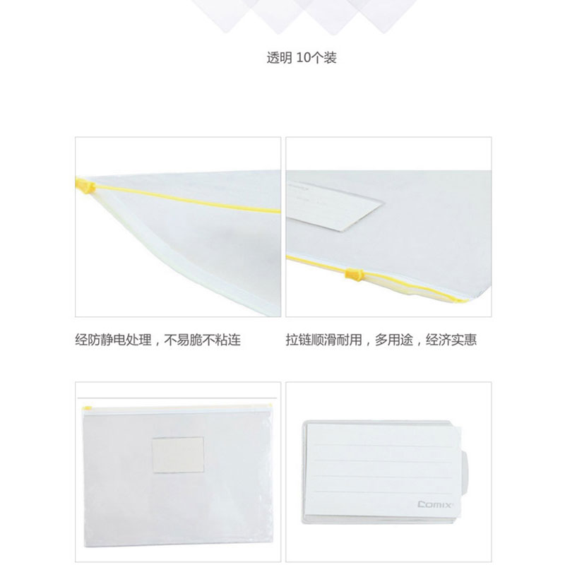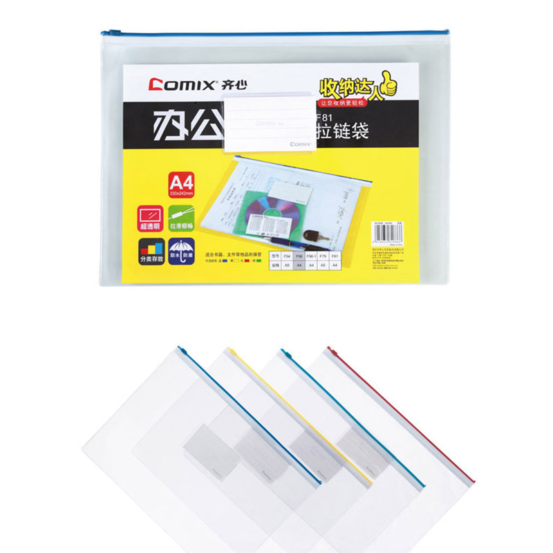 齊心(COMIX) F81 A4辦公必備透明拉鏈袋 底部加寬 顏色隨機(jī) 10個(gè)/包
