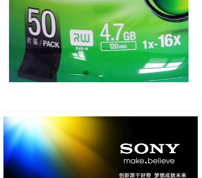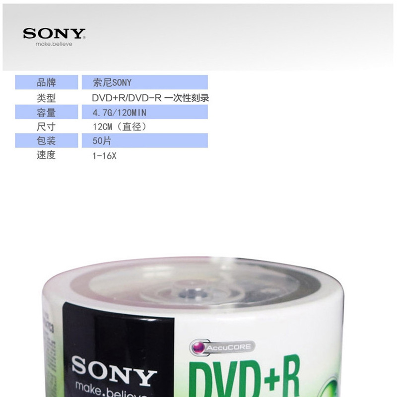 索尼(SONY) DVD+R 光盤/刻錄盤 16速4.7G(50片桶裝)
