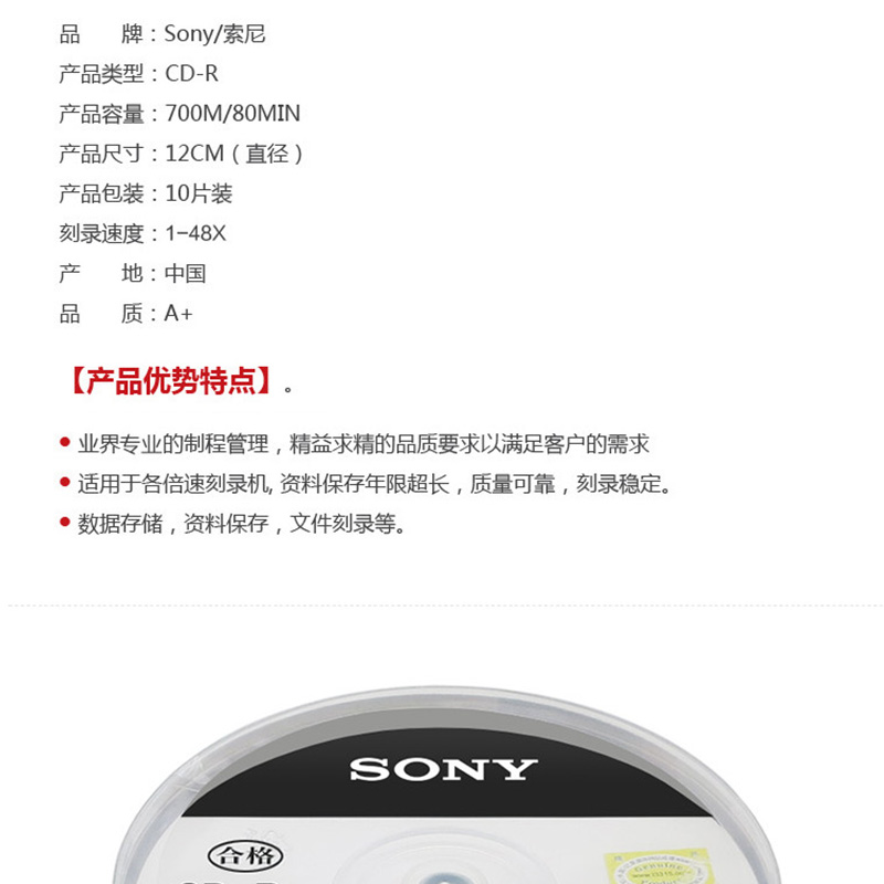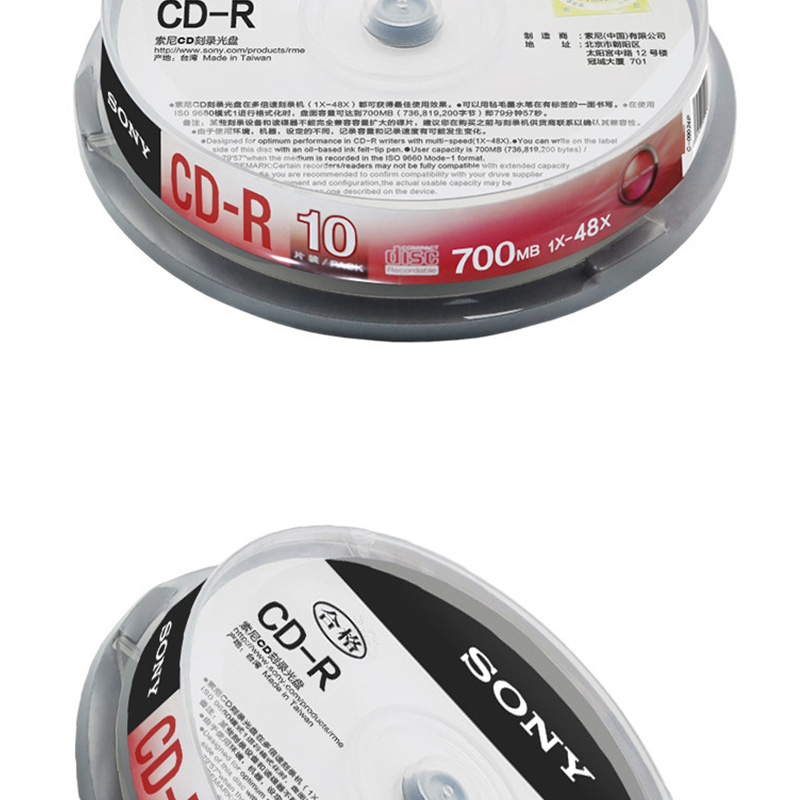 索尼(SONY) CD-R 光盤(pán)/刻錄盤(pán) 48速700MB 桶裝10片