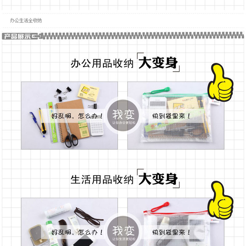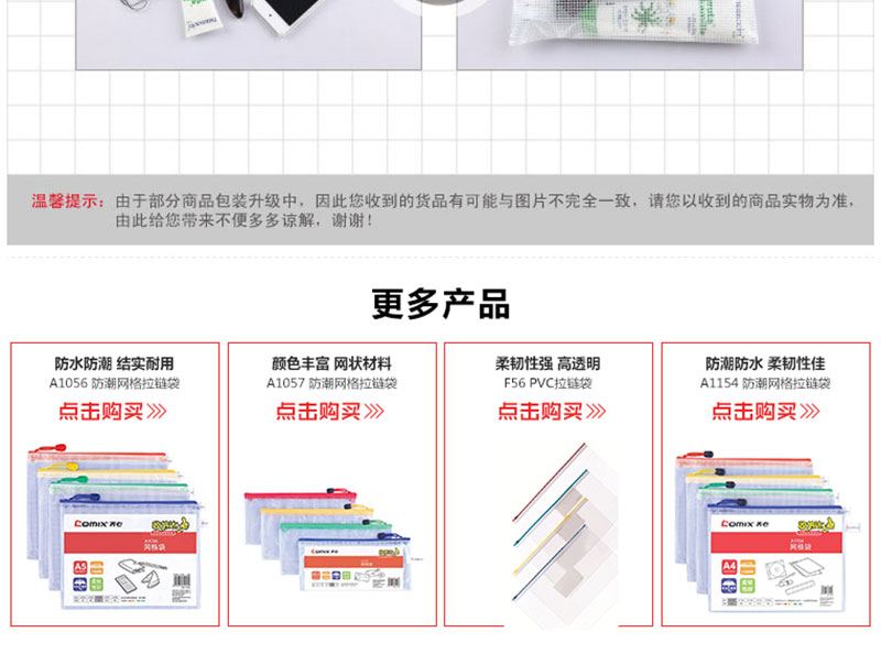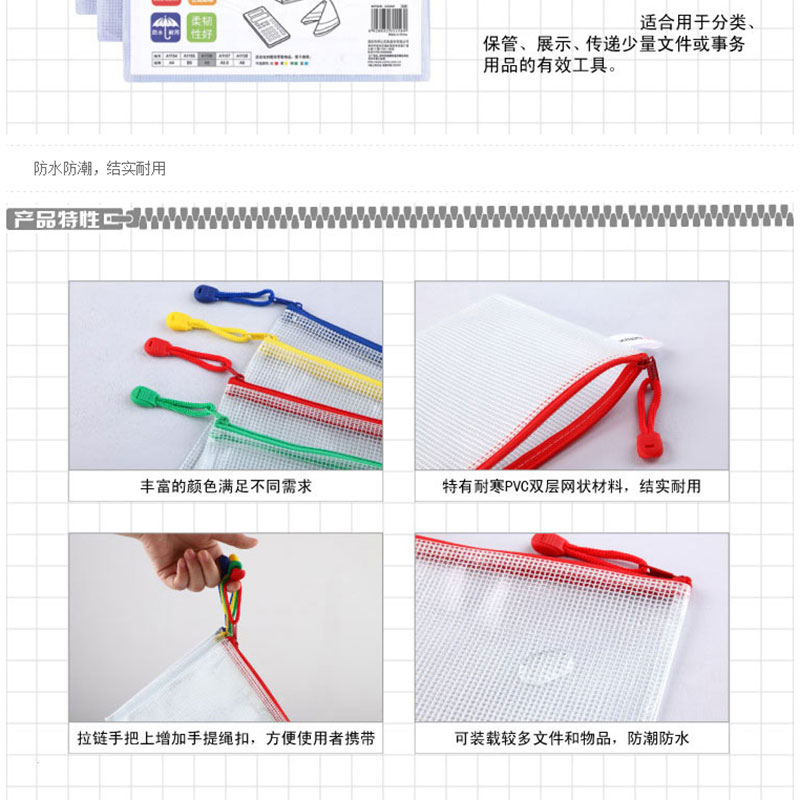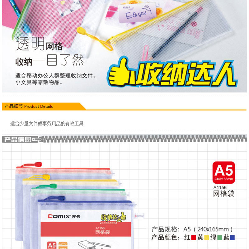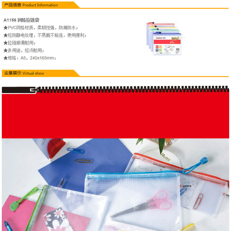 齊心(COMIX) A1156 A5防潮網(wǎng)格拉鏈袋/文件袋/資料袋 顏色隨機 10個/包