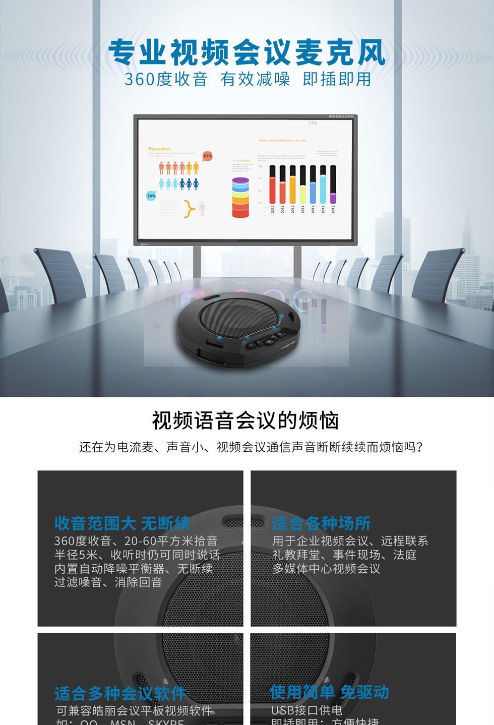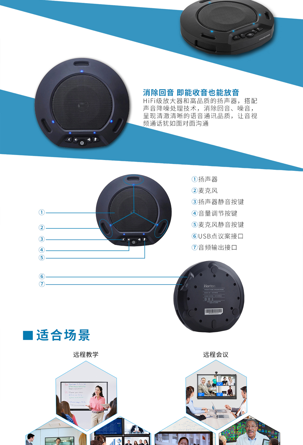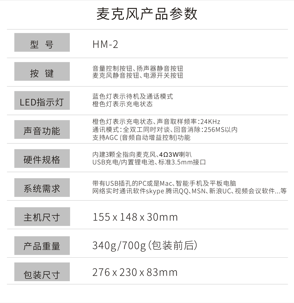 皓麗(Horion) HM-2 視頻會議全向麥克風(fēng) USB接口 降噪消雜音