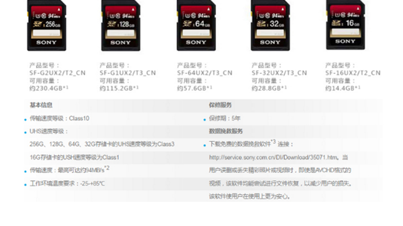索尼(SONY) SF-64UX2 SDXC UHS-I 內(nèi)存卡/SD卡