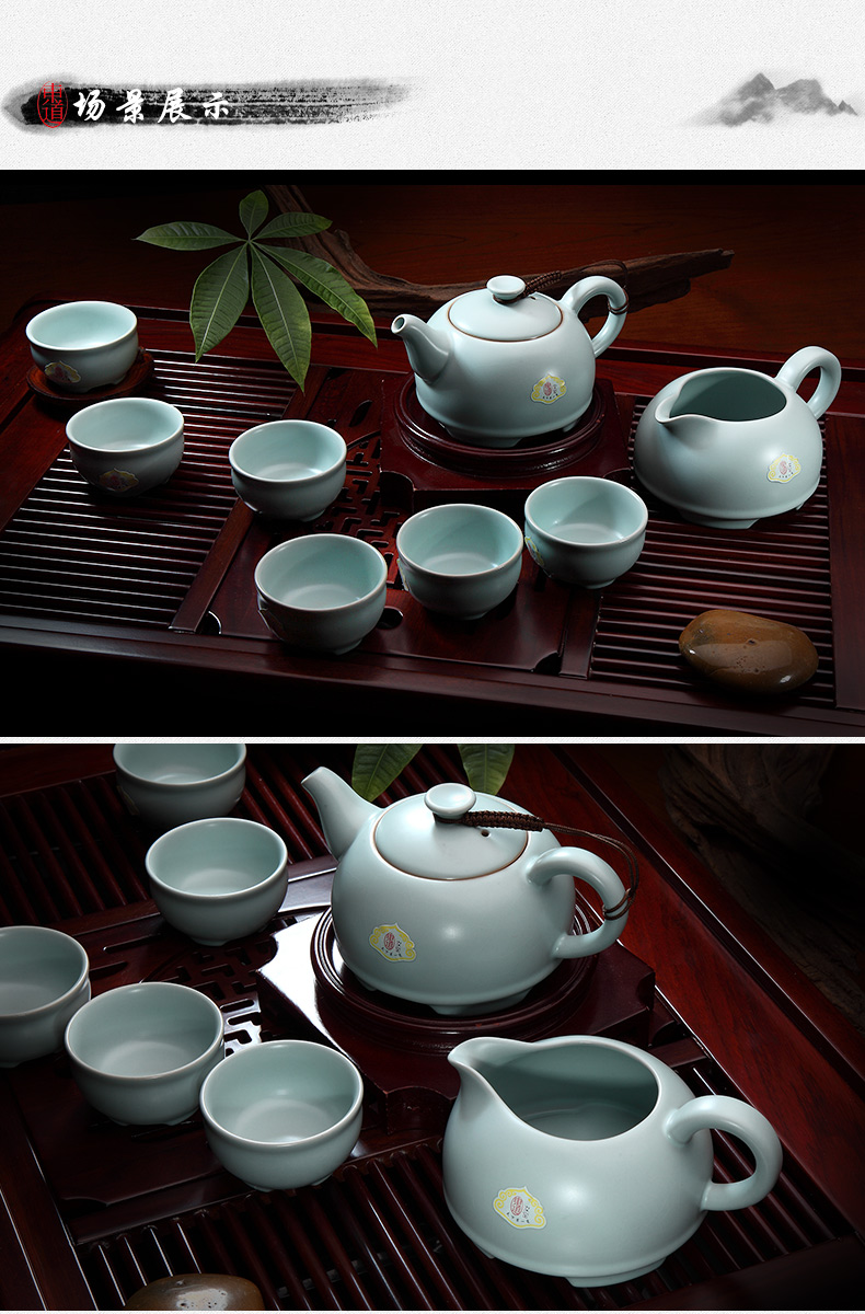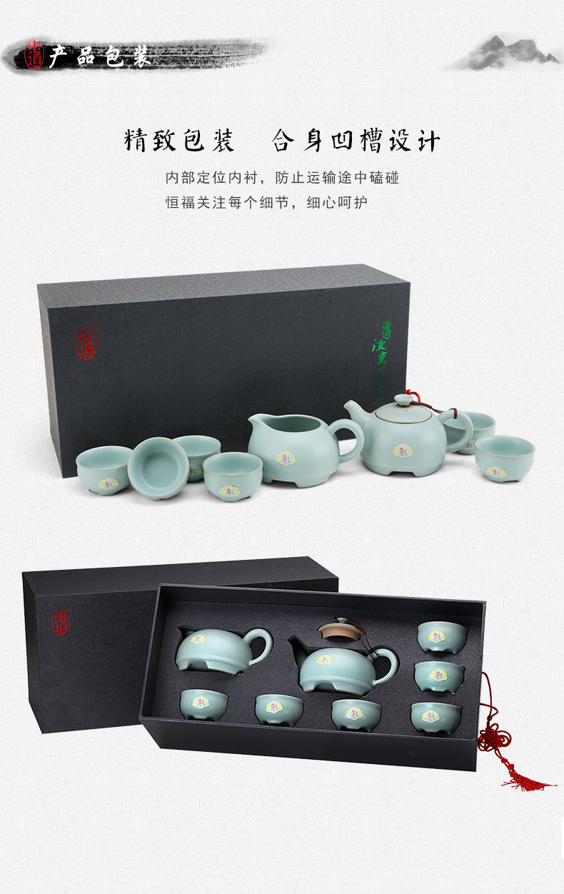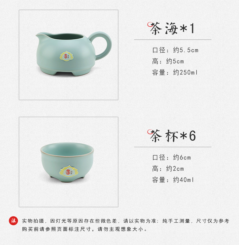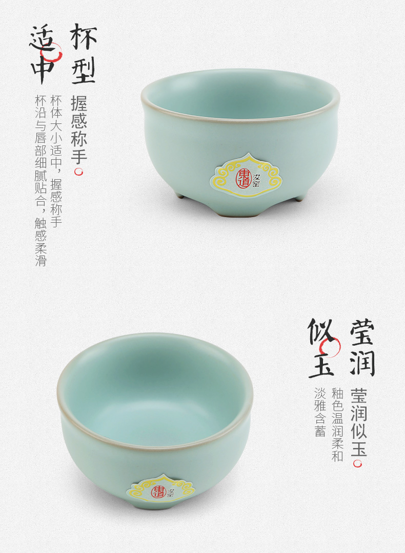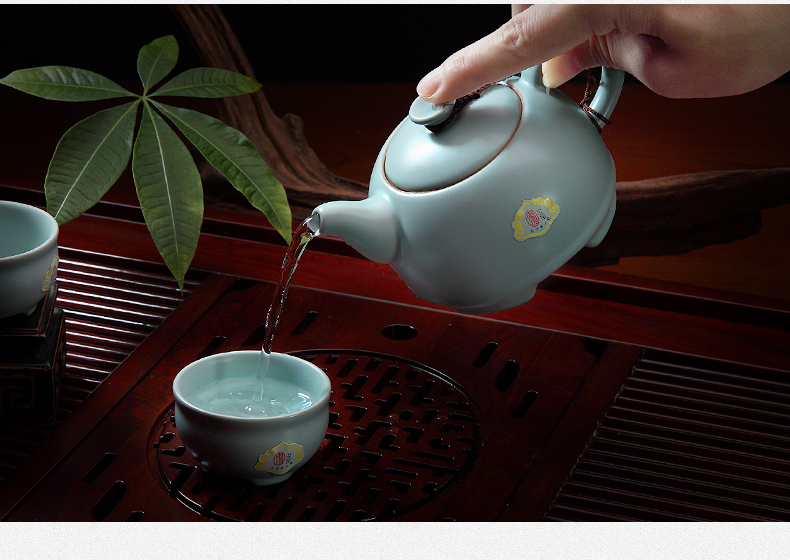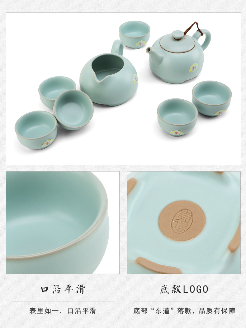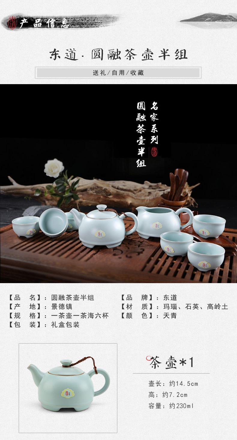 東道汝窯 功夫茶具套裝 圓融茶壺半組/1壺1海6杯(天青色)