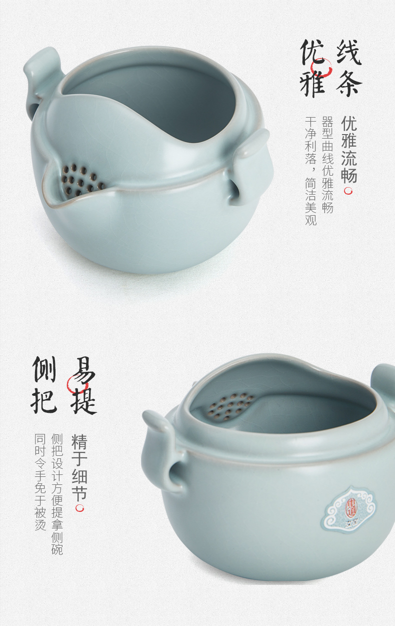 東道汝窯 功夫茶具套裝 禪意旅行茶具套裝/1茶側(cè)2杯(天青色)