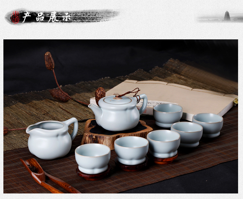 東道汝窯 整套功夫茶具 柿柿如意茶具套裝/1壺1海6杯(天青色)
