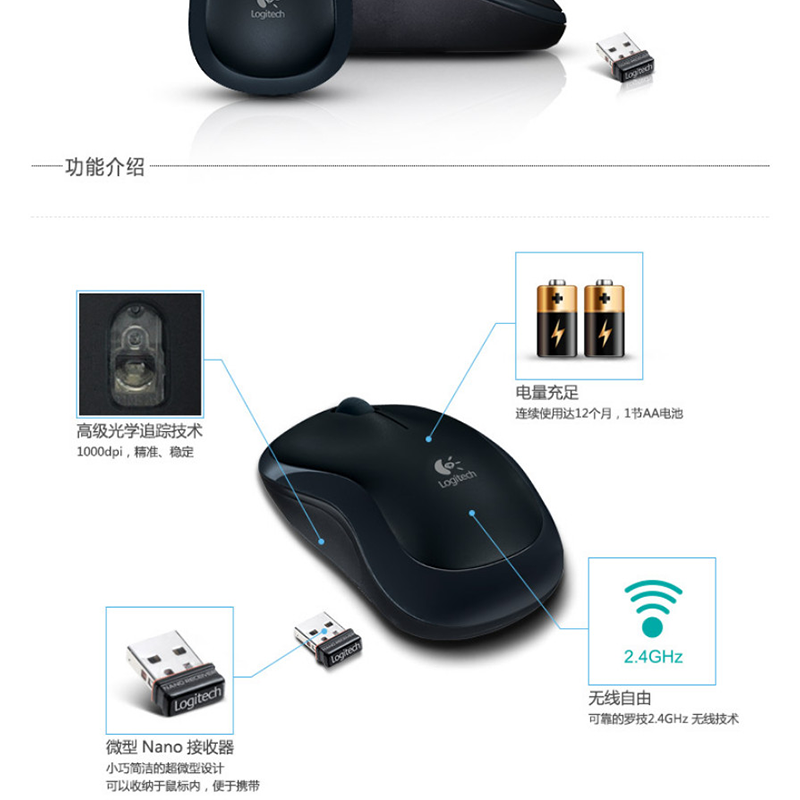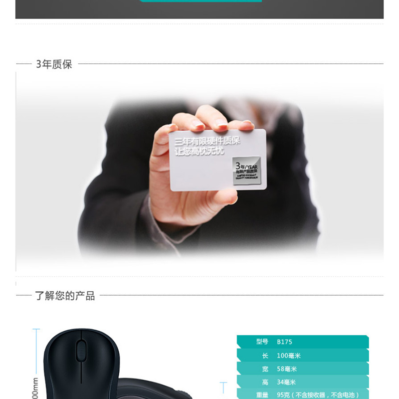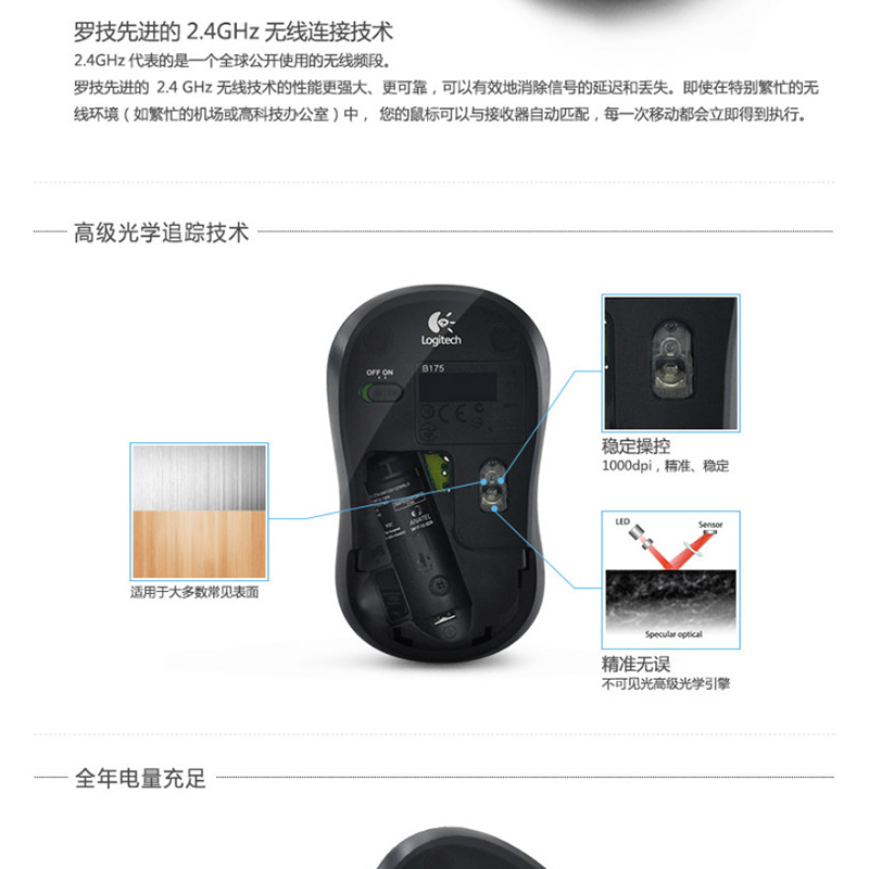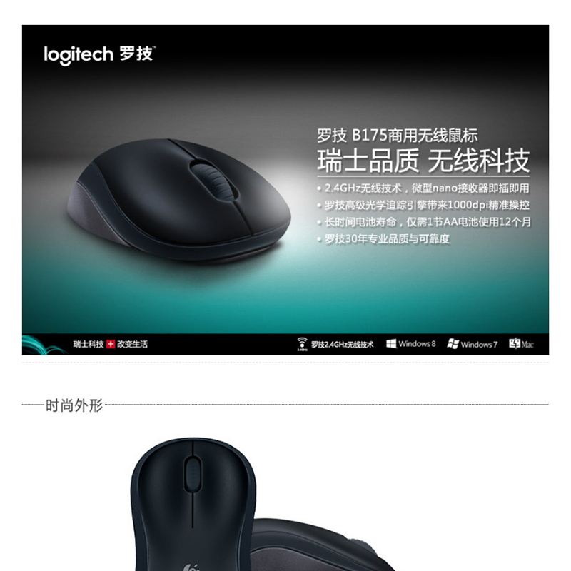 羅技(Logitech) B175 商用無線鼠標(biāo) 黑色