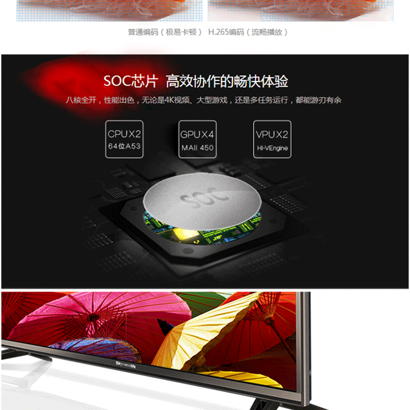 創(chuàng)維(Skyworth) 43E600E 10核超薄窄邊4K超高清液晶電視機 43英寸/金灰色(座裝)