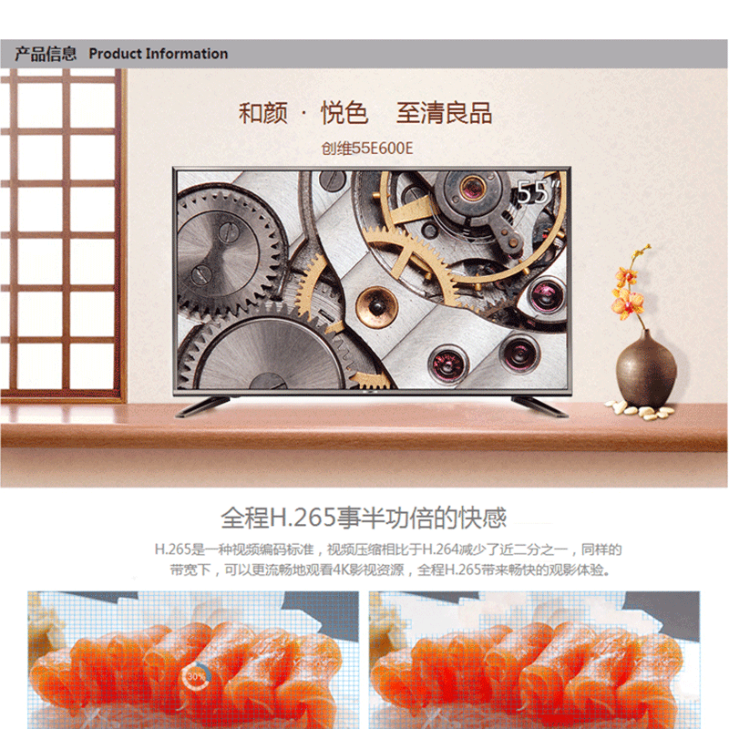 創(chuàng)維(Skyworth) 55E600E 10核超薄窄邊4K超高清液晶電視機(jī) 55英寸/金灰色(座裝)