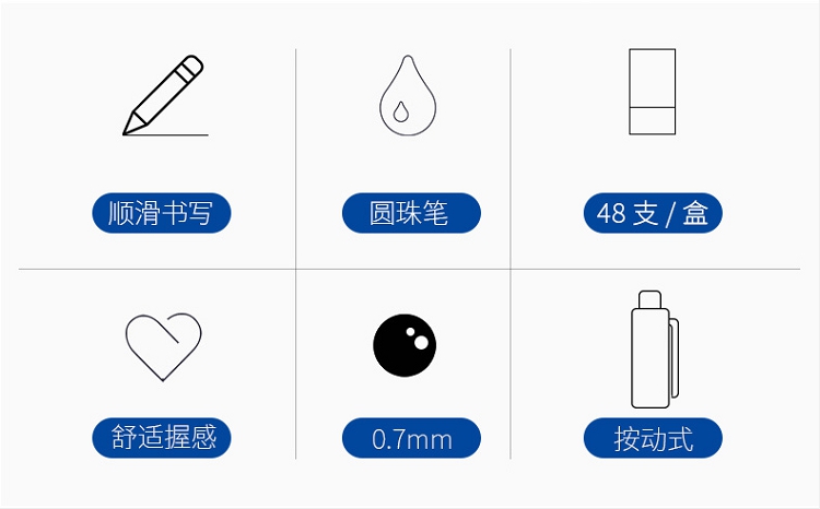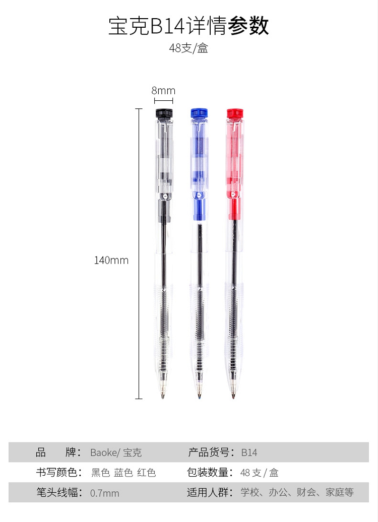 寶克(BAOKE) B14 按動圓珠筆0.7mm/48支裝 (黑色)