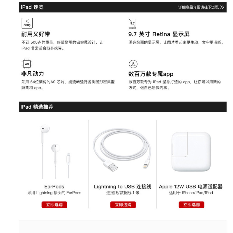 蘋果 Apple iPad 平板電腦 (32G WLAN版/A9 芯片/Retina顯示屏/Touch ID技術 MP2G2CH/A) (深空灰)