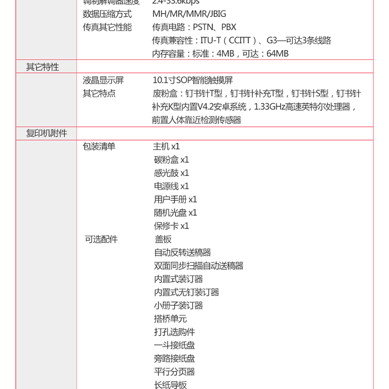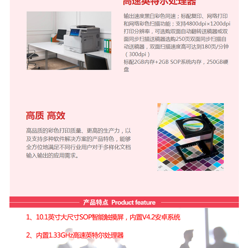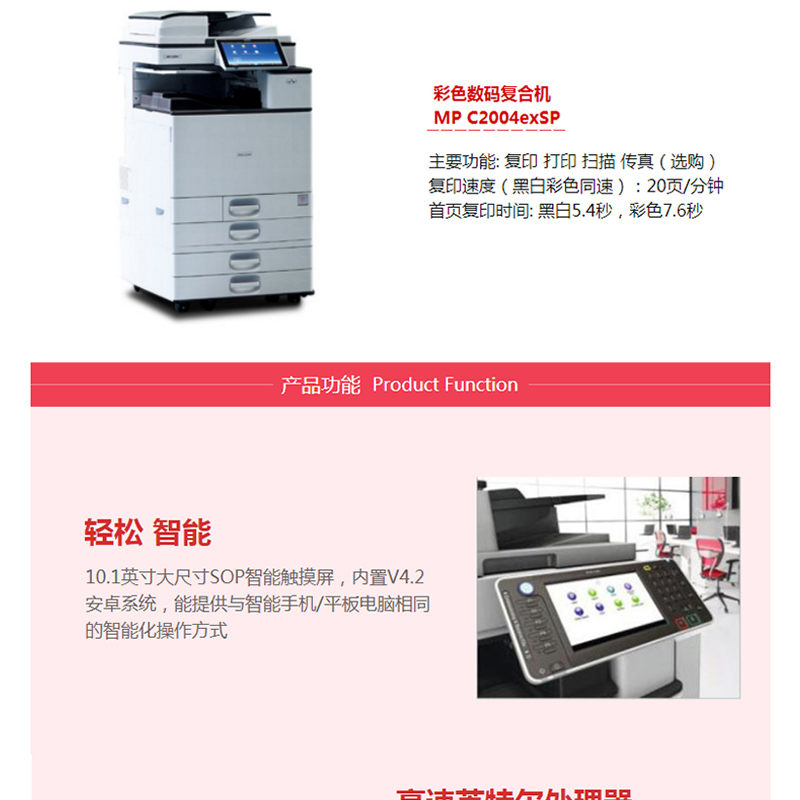 網(wǎng)絡(luò)打印,自動雙面打印,20頁/分鐘,10.1英寸大尺寸SOP智能觸摸屏,內(nèi)置V4.2安卓系統(tǒng) ?
