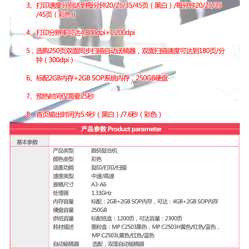 理光(Ricoh) MP C2004exSP 彩色激光一體機(jī) A3多功能復(fù)合機(jī)(打印/復(fù)印/掃描) (四紙盒)