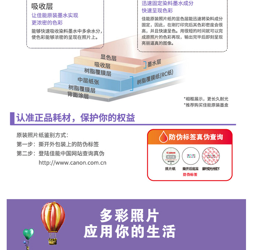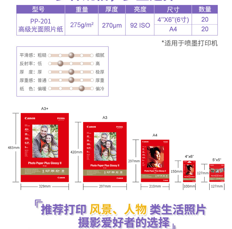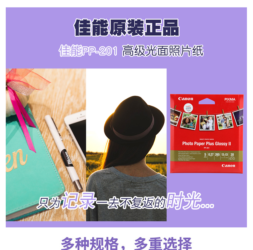 佳能(Canon) PP-201 高級光面照片紙 噴墨打印紙 (SQ 5in.20)