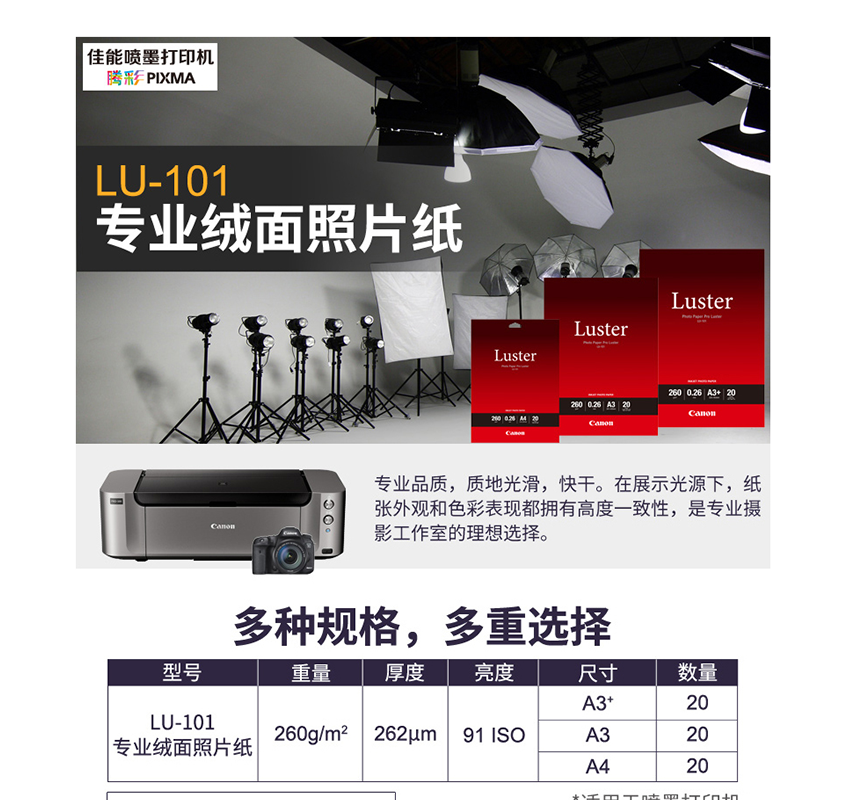 佳能(Canon) LU-101 專業(yè)絨面照片紙/相片紙 (A3/20張)