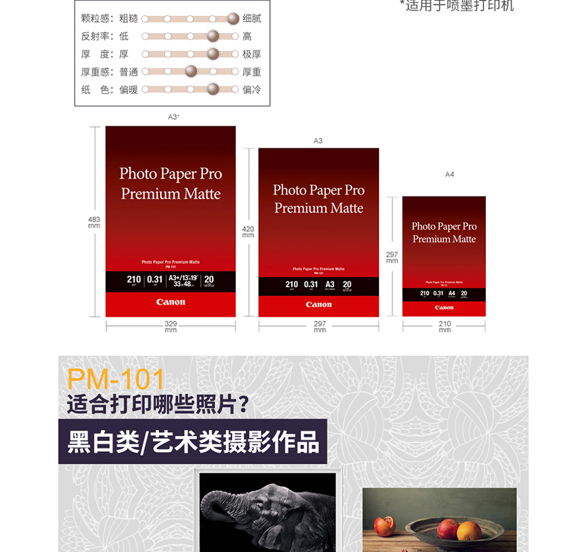 佳能(Canon) PM-101 專業(yè)無光澤照片紙/相片紙 (A3/20張)