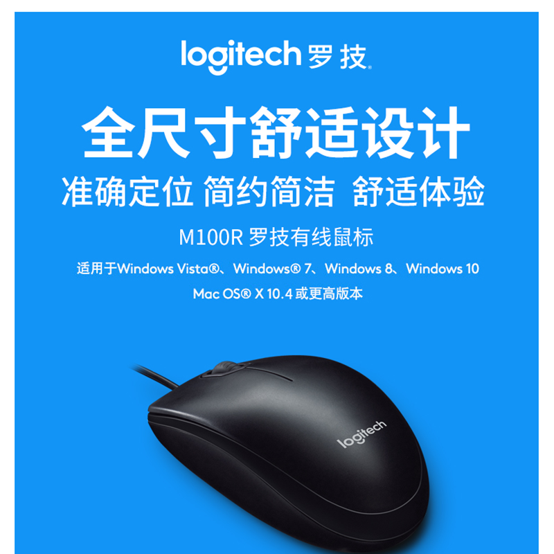 羅技(Logitech) M100r 光電鼠標 即插即用 三年質保 (黑色)