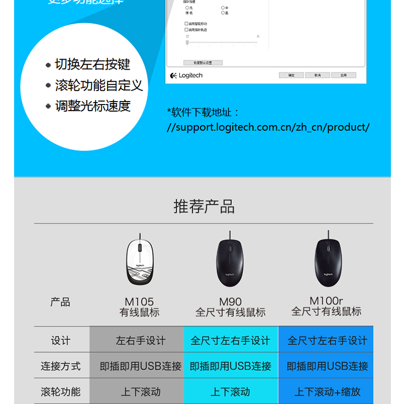 羅技(Logitech) M105 時(shí)尚多彩鼠標(biāo) 左右手通用 (炫酷黑)