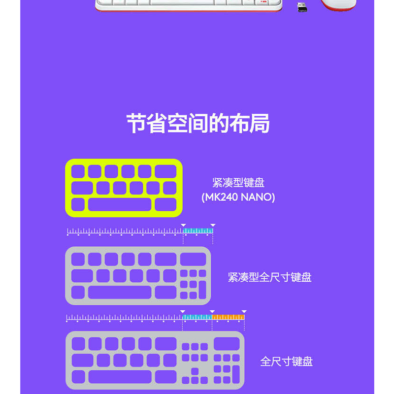 羅技(Logitech) MK245 Nano 無(wú)線鍵鼠套裝 小鍵盤(pán) (白粉)