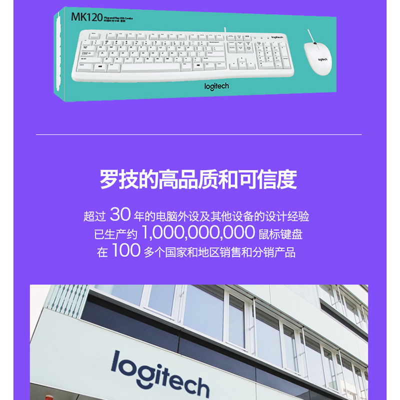 羅技(Logitech) MK120 鼠標(biāo)鍵盤套裝 三年質(zhì)保 (白色)