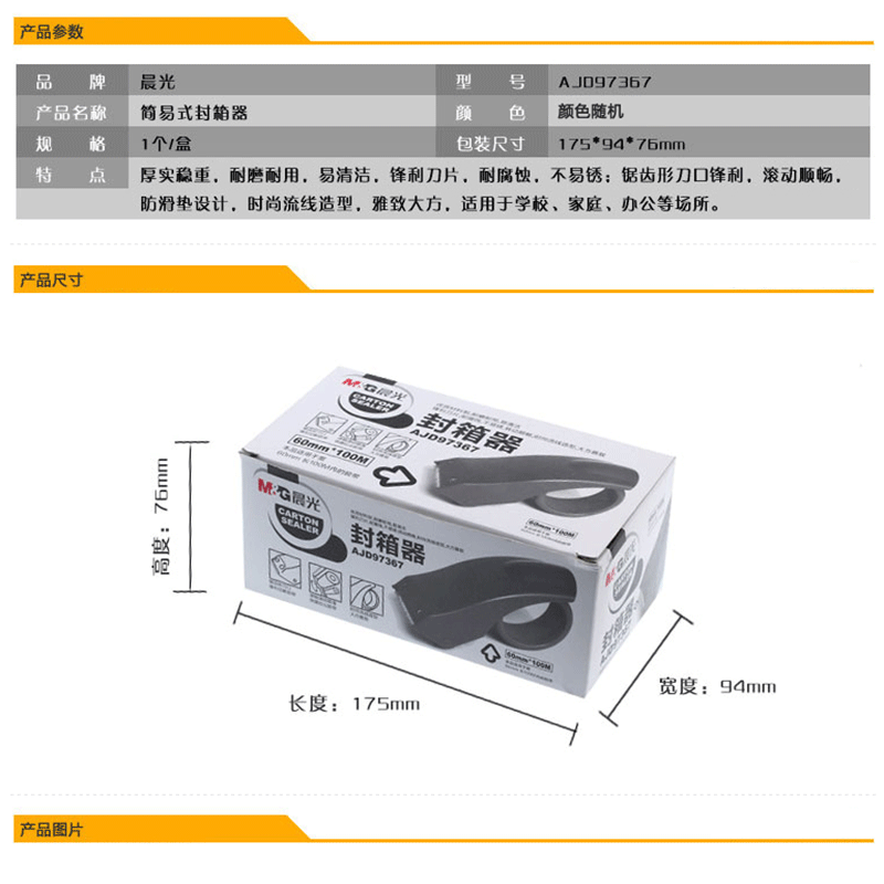 晨光(M&G) AJD97367 簡易式封箱器膠帶切割器適用膠帶寬度60mm 顏色隨機