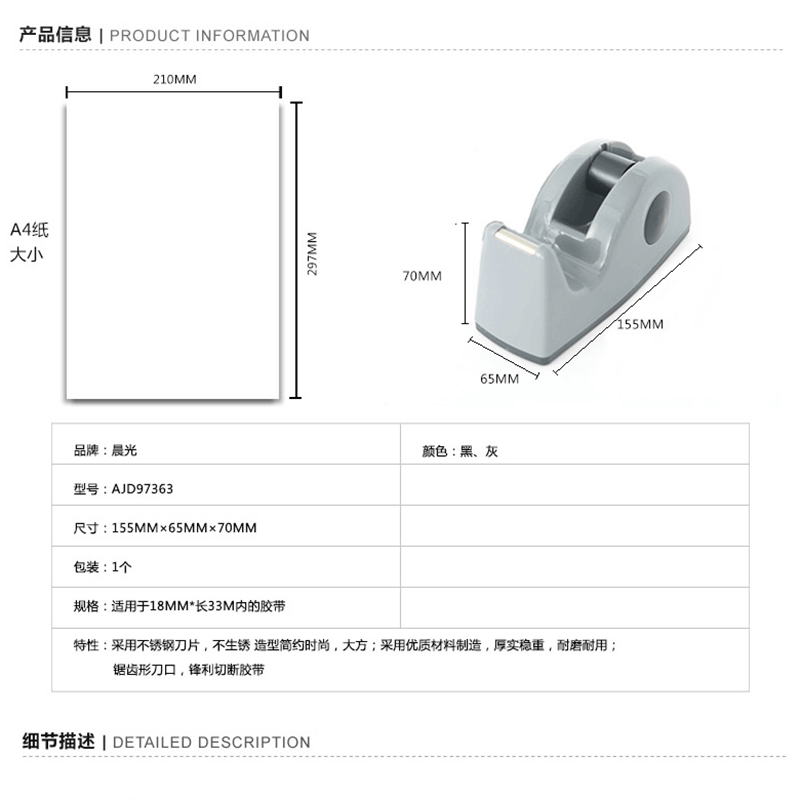 晨光(M&G) AJD97363 小號(hào)膠帶座膠帶切割器 顏色隨機(jī)