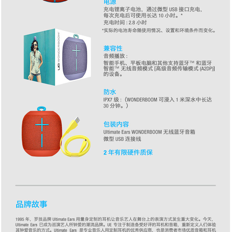 羅技(Logitech) UE WONDERBOOM 無線藍牙 便攜音箱 (紫色)