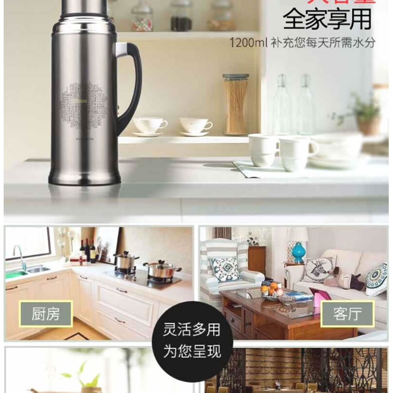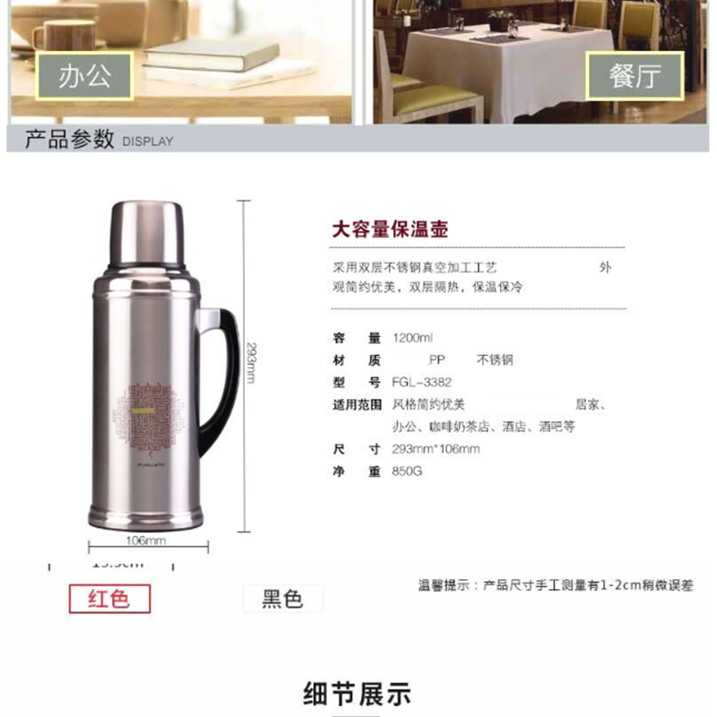 富光 3383 真空熱水瓶保溫瓶暖水瓶家用暖壺保溫壺開水瓶全不銹鋼內(nèi)膽 1200ML(黑色)